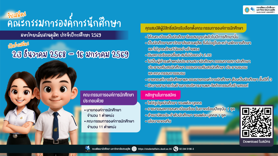 มหาวิทยาลัยสวนดุสิต 295 ถนนนครราชสีมา ดุสิต กรุงเทพมหานคร 10300