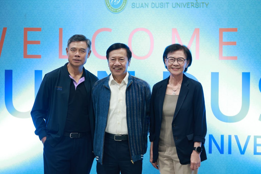 ในการนี้ ผู้ช่วยศาสตราจารย์ ดร.พิทักษ์ จันทร์เจริญ อธิการบดีมหาวิทยาลัยสวนดุสิต พร้อมด้วยคณะผู้บริหาร ได้ให้การต้อนรับ ศาสตราจารย์ ดร.วิเลิศ ภูริวัชร ประธานที่ประชุมอธิการบดีแห่งประเทศไทย และผู้บริหารจากสถาบันอุดมศึกษาต่าง ๆ ที่เดินทางมาเข้าร่วมการประชุม