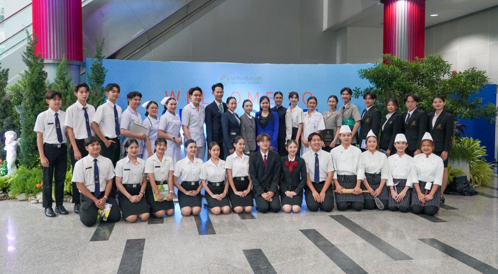 มหาวิทยาลัยสวนดุสิต โดยอาจารย์ บุคลากร และนักศึกษา จากโรงเรียนการเรือน โรงเรียนการท่องเที่ยวและการบริการ รวมถึงส่วนงานต่าง ๆ ได้ร่วมกันนําองค์ความรู้และความเชี่ยวชาญมาจัดกิจกรรม “ชม ชิม นิทรรศการอาหาร” ภายใต้แนวคิด “Let’s Evolute! การเดินทางแห่งรสชาติ: มรดกมนุษยชาติผ่านมื้ออาหาร” ซึ่งนำเสนอผ่าน 6 ยุคสำคัญ ได้แก่