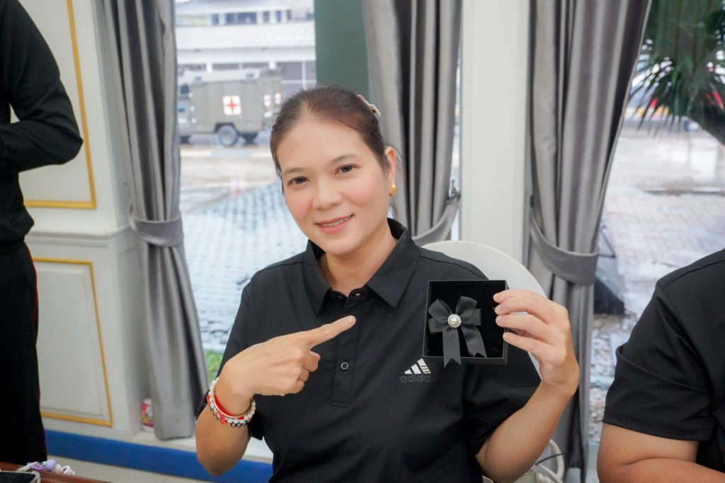 • คุณศศินีย์ อุดมศักดิ์ ประธานชมรมแม่บ้าน พล.ปตอ. สาขา ปตอ.๒ เป็นประธาน