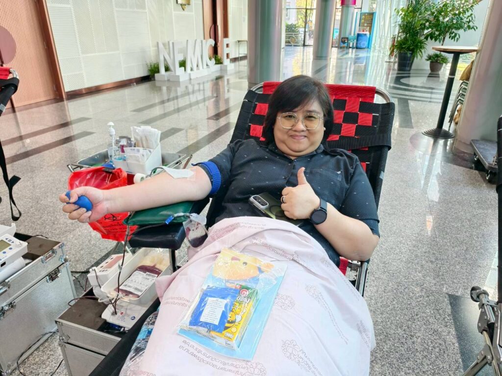 ทั้งนี้ มีนักศึกษาและบุคลากร ร่วมบริจาคโลหิตทั้งหมด ๗๗ คน ปริมาณโลหิตจำนวน ๓๔,๖๕๐ ซี.ซี.