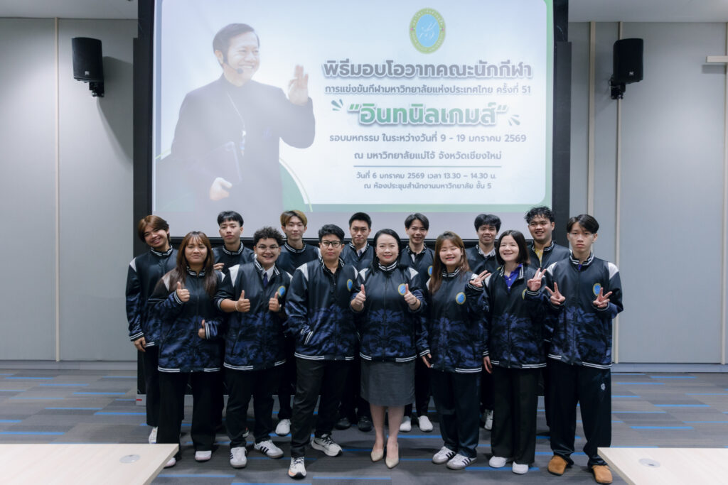 ผู้ช่วยศาสตราจารย์ ดร.พิทักษ์ จันทร์เจริญ อธิการบดี เป็นประธานในพิธีมอบโอวาทคณะนักกีฬา เพื่อเตรียมความพร้อมเข้าร่วมการแข่งขันกีฬามหาวิทยาลัยแห่งประเทศไทย ครั้งที่ ๕๑ “อินทนิลเกมส์” รอบมหกรรม ซึ่งมีกำหนดจัดการแข่งขันระหว่างวันที่ ๙ – ๑๙ มกราคม ๒๕๖๙ ณ มหาวิทยาลัยแม่โจ้ จังหวัดเชียงใหม่