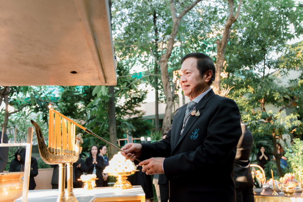 ต่อมา ผู้ช่วยศาสตราจารย์ ดร.พิทักษ์ จันทร์เจริญ อธิการบดี เป็นประธานในพิธี จุดธูปเทียนบูชาพระรัตนตรัย ถวายผ้าไตรและจตุปัจจัย โดยมี พระโสภณธรรมวงศ์ เจ้าคณะแขวงวัดสามพระยา เจ้าอาวาสวัดอินทรวิหาร พระอารามหลวง เป็นประธานสงฆ์ กล่าวสัมโมทนียกถาให้พรปีใหม่แก่บุคลากรมหาวิทยาลัยสวนดุสิต และร่วมกันตักบาตรพระสงฆ์จำนวน ๑๐ รูป