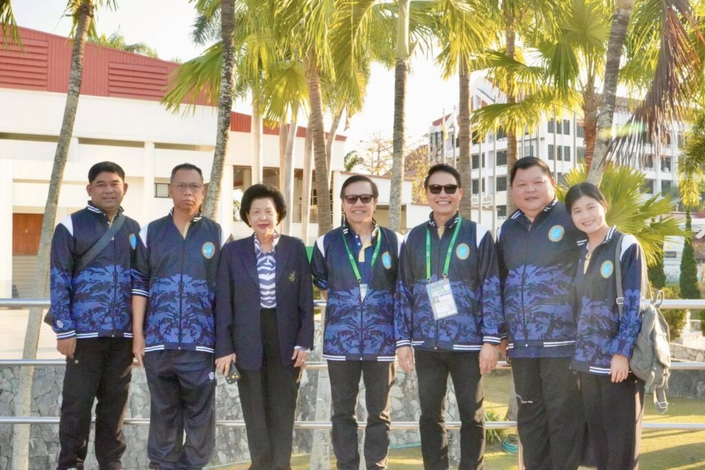 ผู้ช่วยศาสตราจารย์ ดร.พิทักษ์ จันทร์เจริญ อธิการบดี หัวหน้าคณะนักกีฬามหาวิทยาลัยสวนดุสิต พร้อมด้วย