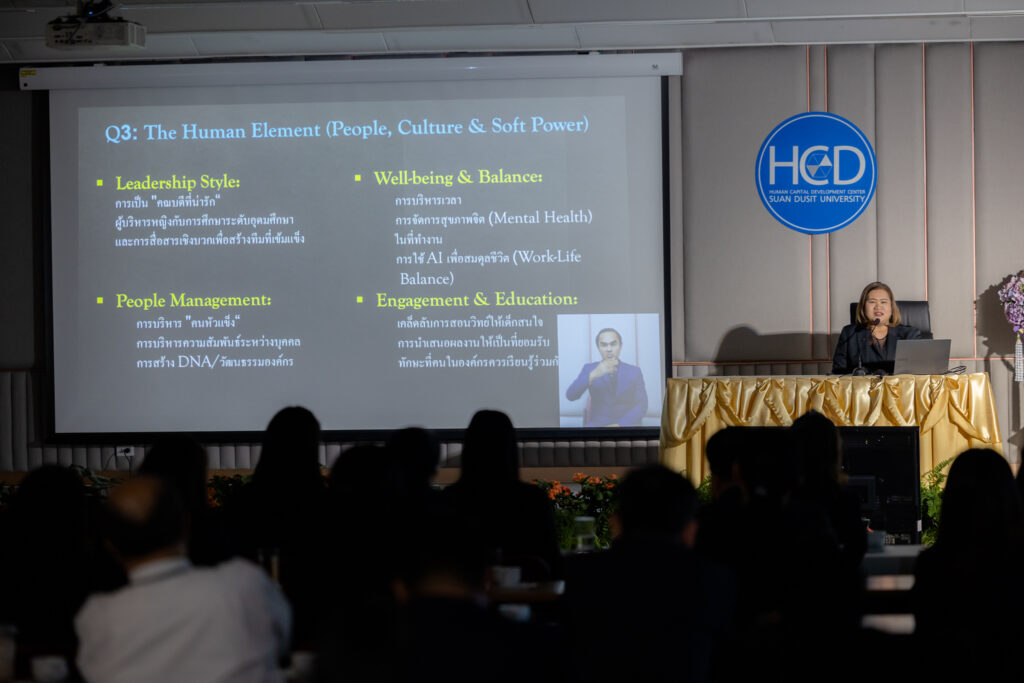 การอบรมมุ่งเน้นการถ่ายทอดประสบการณ์ตรงจากการบริหารงาน การทำงานเชิงกลยุทธ์ และการสร้างแรงบันดาลใจในการพัฒนาองค์กร พร้อมเปิดโอกาสให้ผู้เข้าร่วมได้ซักถาม แลกเปลี่ยนความคิดเห็น และเรียนรู้ร่วมกันอย่างใกล้ชิด