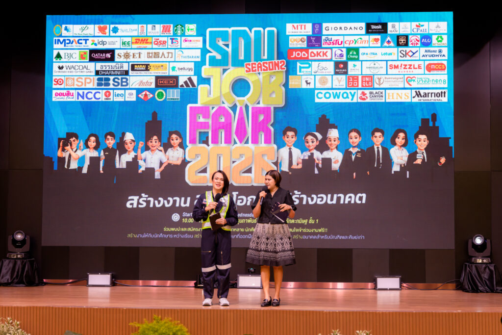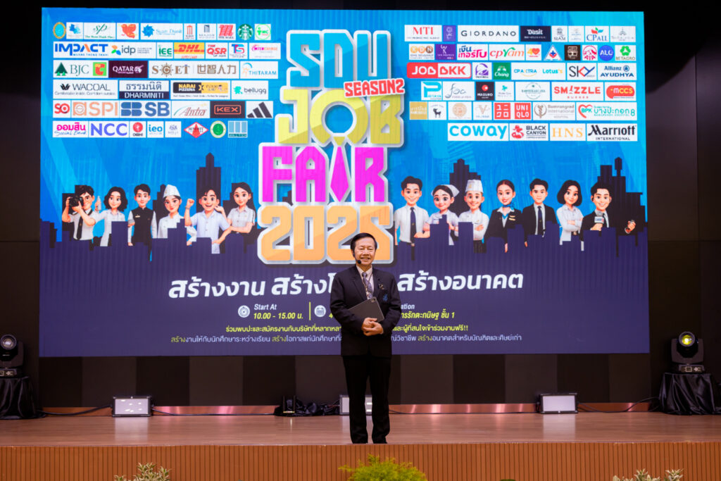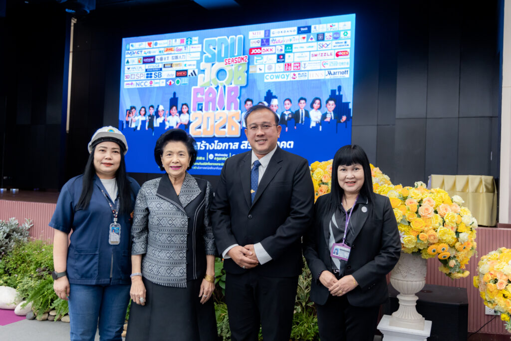 มหาวิทยาลัยสวนดุสิต โดยกองพัฒนานักศึกษา จัดกิจกรรม “SDU JOB FAIR 2026 Season 2” เพื่อเปิดพื้นที่แห่งโอกาสทางอาชีพให้แก่นักศึกษา บัณฑิต และศิษย์เก่า โดยได้รับเกียรติจาก ผู้ช่วยศาสตราจารย์ ดร.พิทักษ์ จันทร์เจริญ อธิการบดี เป็นประธานกล่าวเปิดงาน พร้อมร่วมถ่ายภาพกับคณะผู้บริหาร ผู้ประกอบการ และผู้เข้าร่วมงาน ก่อนเยี่ยมชมบูธกิจกรรมต่าง ๆ ภายในงาน