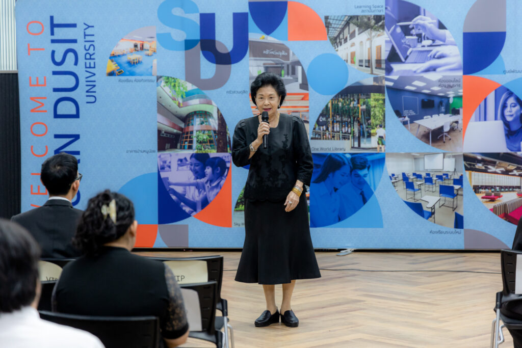 ในการนี้ ผู้ช่วยศาสตราจารย์ ดร.ศุภศิริ บุญประเวศ ประธานหลักสูตรศิลปศาสตรบัณฑิต สาขาวิชาภาษาและการสื่อสาร กล่าวต้อนรับผู้เข้าร่วมกิจกรรม โดยภายในงานมีการนำเสนอผลงานและประสบการณ์จากการฝึกประสบการณ์วิชาชีพภายในมหาวิทยาลัยสวนดุสิต ถ่ายทอดมุมมองการเรียนรู้จริงจากสถานการณ์ทำงาน