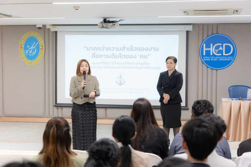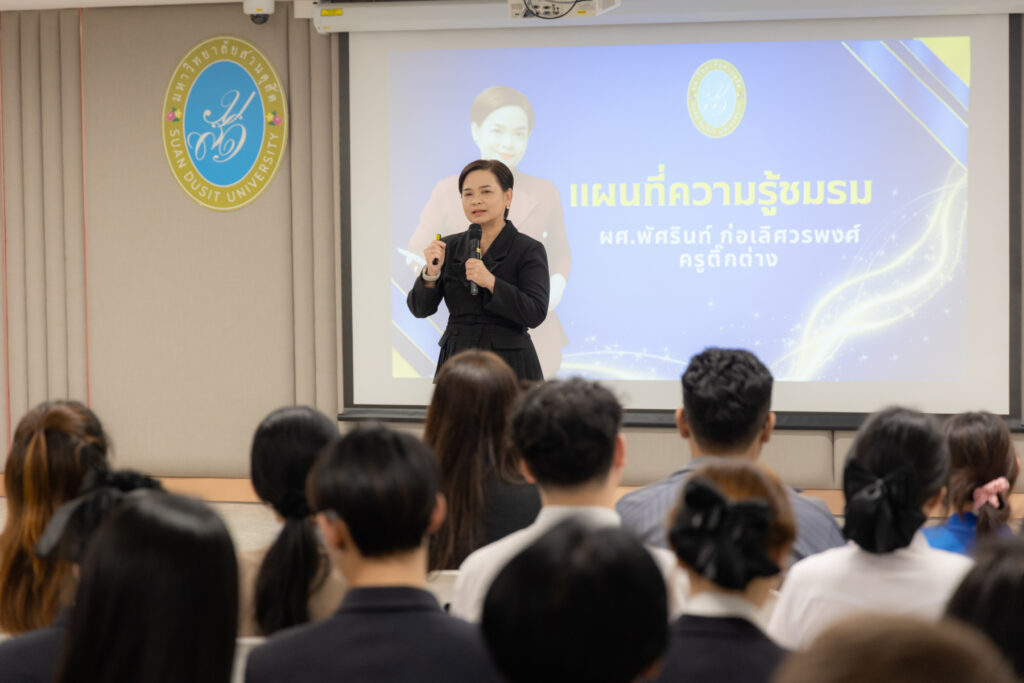 โดย ผู้ช่วยศาสตราจารย์พัศรินทร์ ก่อเลิศวรพงศ์ อาจารย์ประจำหลักสูตรจิตวิทยาอุตสาหกรรมและองค์การ และสุดยอดอาจารย์ดีเด่น มหาวิทยาลัยสวนดุสิต ปี ๒๕๖๘ ถ่ายทอดแนวคิดและแนวทางการจัดการองค์ความรู้ภายในชมรมอย่างเป็นระบบ