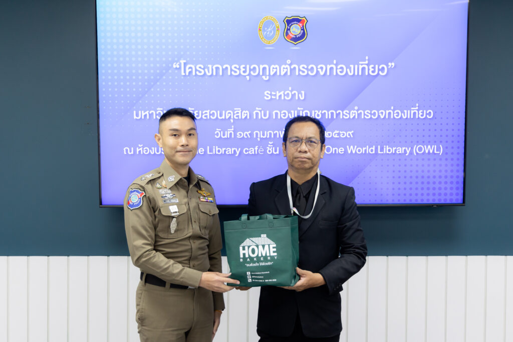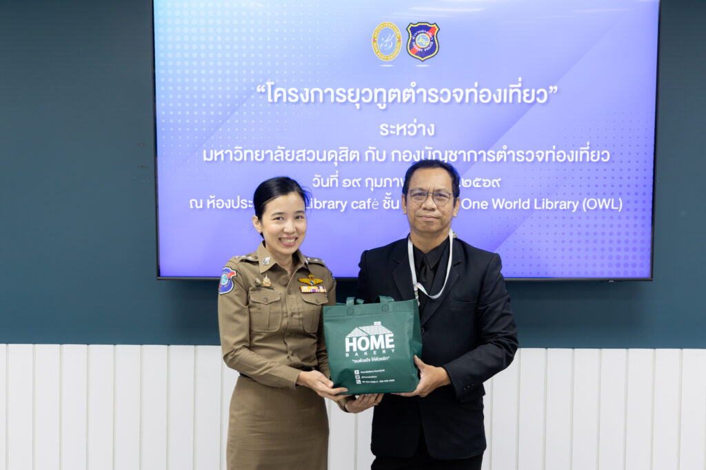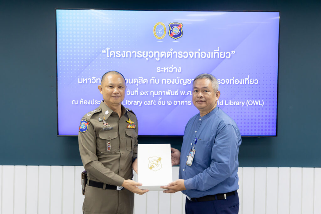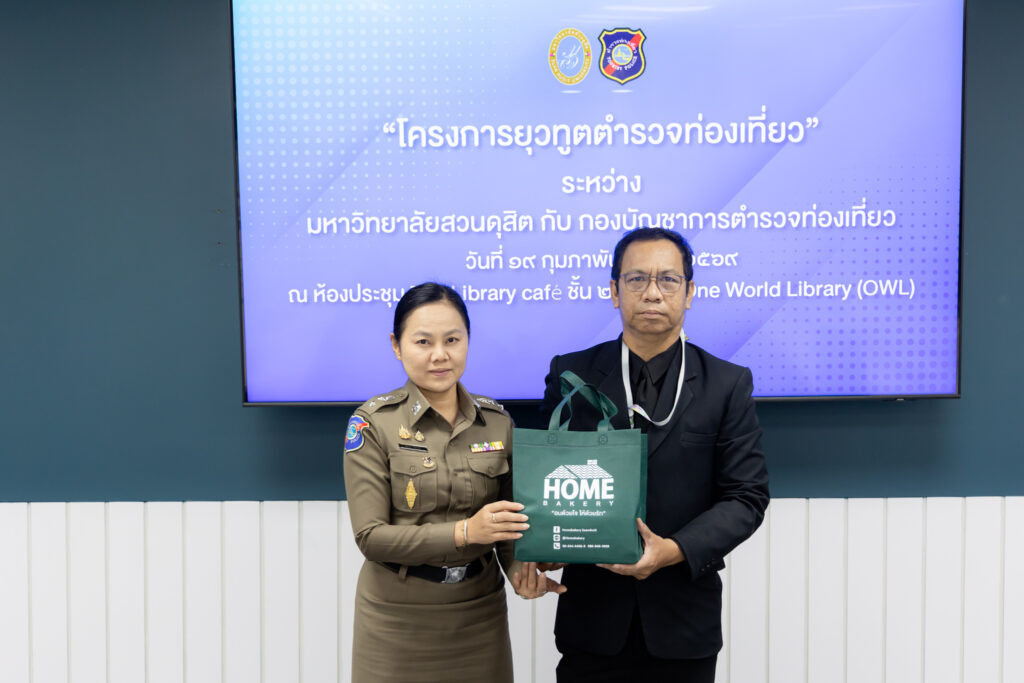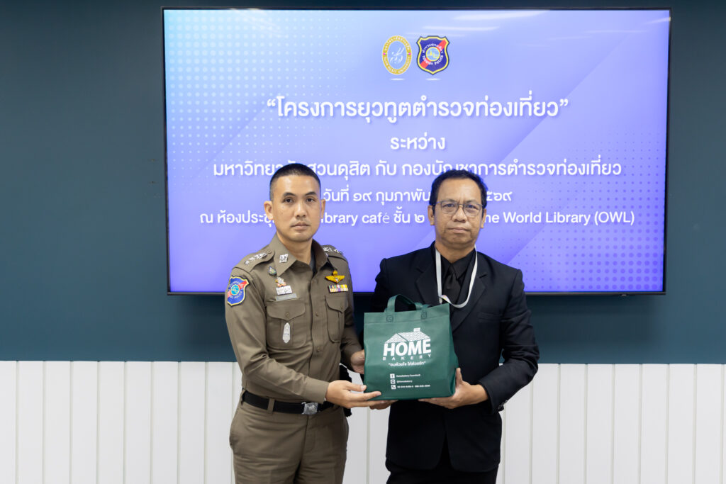 รองศาสตราจารย์พัชรี สวนแก้ว รองอธิการบดีฝ่ายกิจการนักศึกษา มอบหมายให้ ผู้ช่วยศาสตราจารย์ ดร.ธนากร ปักษา ผู้อำนวยการกองพัฒนานักศึกษา ดร.สุชาดา อภิรัตน์ รองคณบดีโรงเรียนการท่องเที่ยวและการบริการ และบุคลากรกองพัฒนานักศึกษา ให้การต้อนรับ พล.ต.ต.กฤษณ์ วาฤทธิ์ รองผู้บัญชาการตำรวจท่องเที่ยว และทีมงาน ในการประชุมเตรียมความพร้อม “โครงการยุวทูตตำรวจท่องเที่ยว” ระหว่าง มหาวิทยาลัยสวนดุสิต กับ กองบัญชาการตำรวจท่องเที่ยว (บช.ทท.)