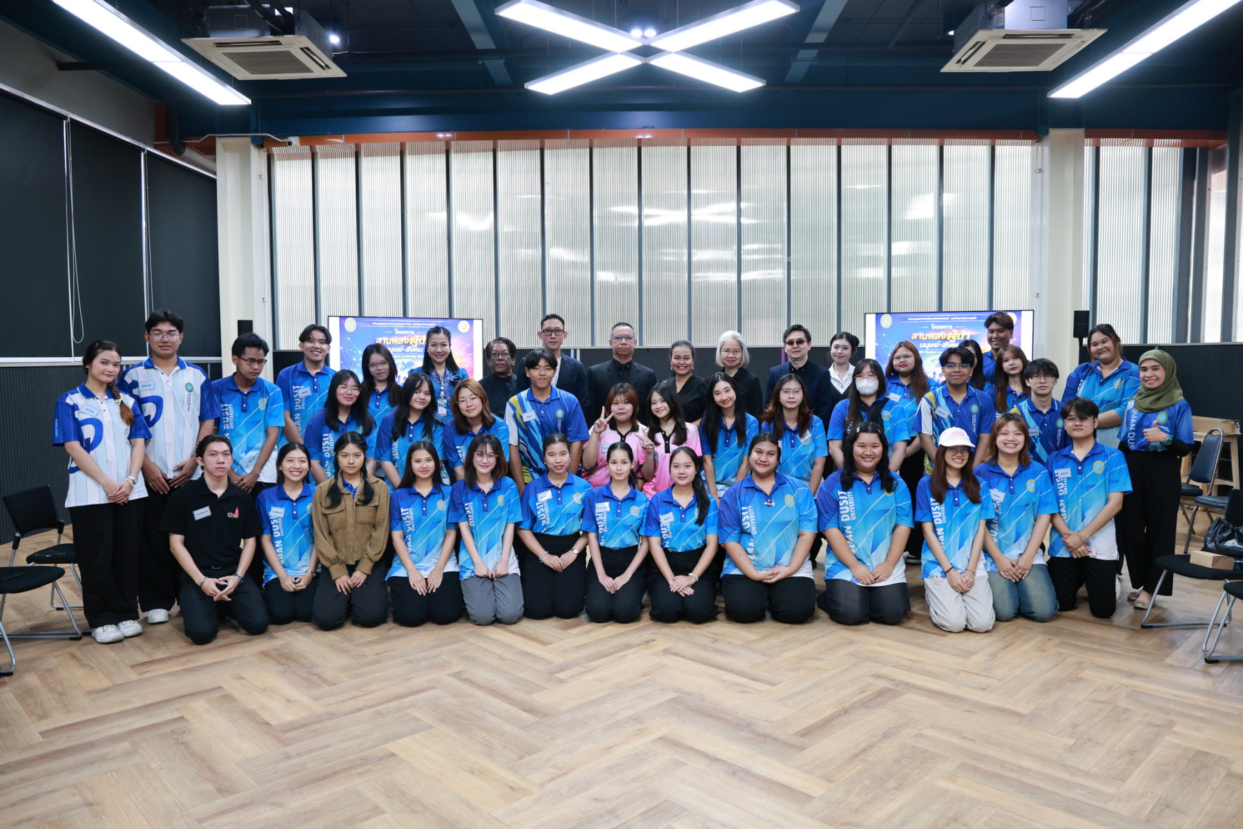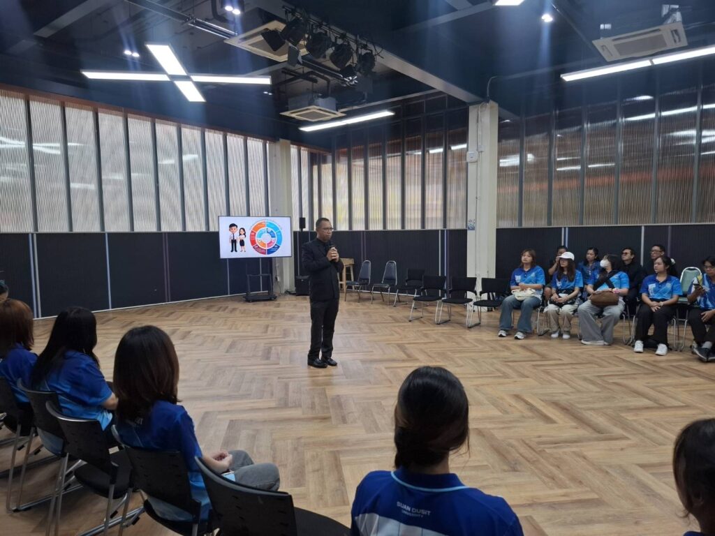 มหาวิทยาลัยสวนดุสิต โดย ผู้ช่วยศาสตราจารย์ ดร.ธนากร ปักษา ผู้อำนวยการกองพัฒนานักศึกษา ให้โอวาทและแนะแนวทางในการจัดกิจกรรมนักศึกษาในระดับคณะและระดับมหาวิทยาลัย ภายใต้โครงการ สานพลังผู้นำ มนุษย์-สังคม (SDU Student Leadership Alliance)